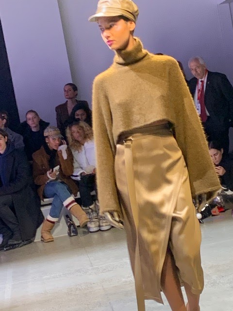 In the show notes, the designer says she drew references from Elvis’ 1968 comeback special and applied the aesthetic to modern day dressing. The Fall 2019 variation included newsboy hats, relax-fit belted pants and faux wrap midi-skirts with a high slit. Click here to see pictures from inside the show.