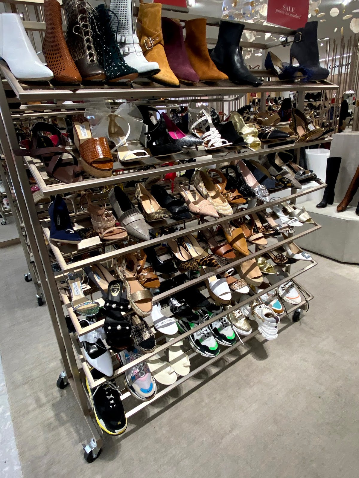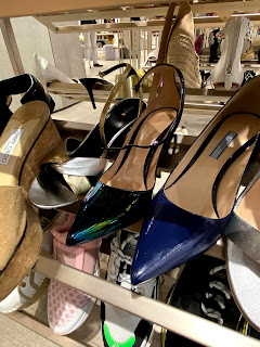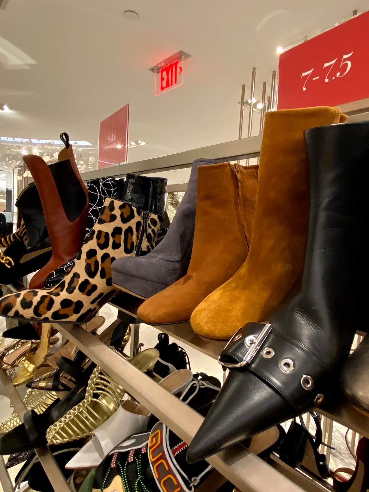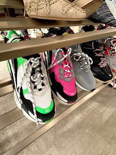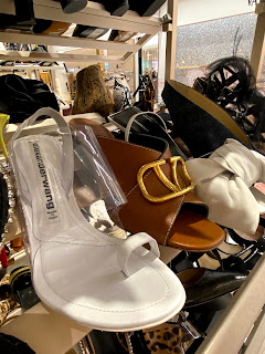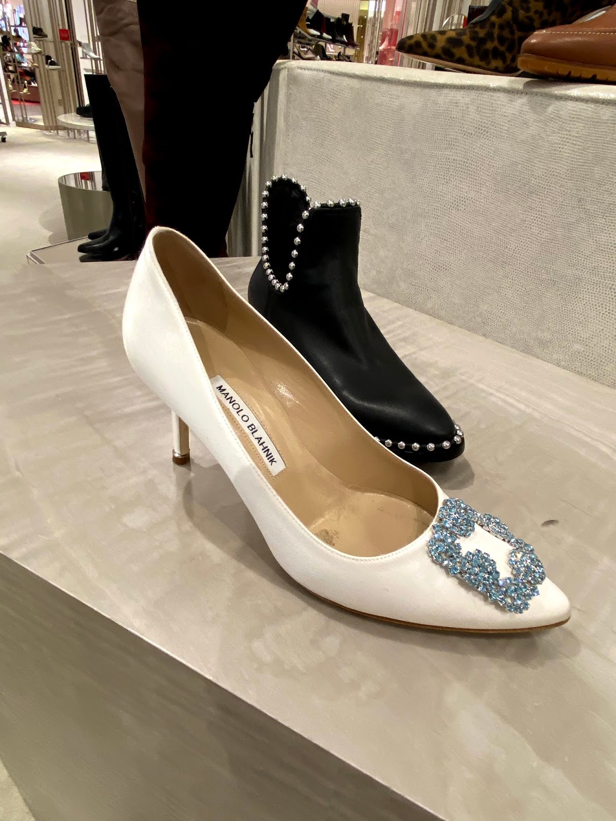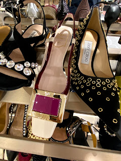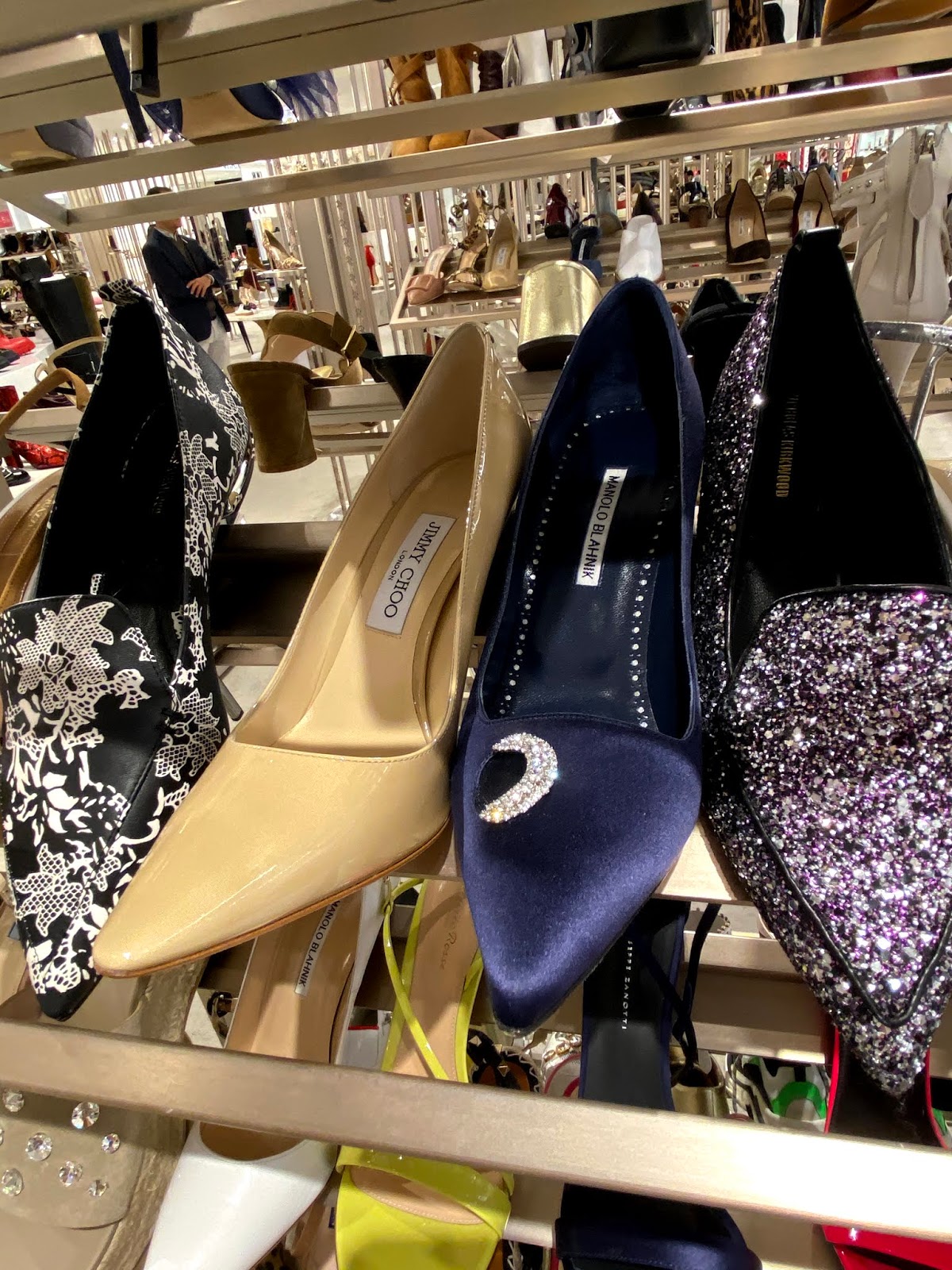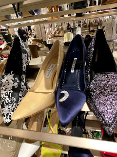 Among the shoes, you will find plenty of Manolo styles still in stock. We have our eyes on these lace Hangisi. and here are flats. There are still several sizes left of these Fendi print loafers but this stacked heel Givenchy loafer is almost completely sold out. Grab it if your size remains. There is a larger selection at the store. Click here to see assorted pictures.